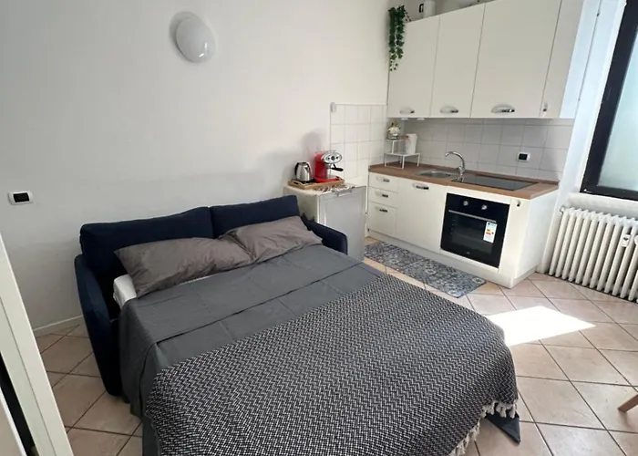 Eine Küche mit einem Wasserkocher, einem Herd und einem Kochfeld gehört zu den Selbstversorgungsmöglichkeiten. Mit Ausstattung zur Kaffee- & Teezubereitung ausgestattet, bietet das Apartment den Gästen einen komfortablen und mühelosen Aufenthalt. Das Restaurant Break Time bietet Gerichte der italienischen Küche und liegt nur 5 Fußminuten von der Unterkunft entfernt. Es dauert 15 Minuten mit dem Auto zum Mailand-Linate „Enrico Forlanini“ Flughafen zu gelangen.